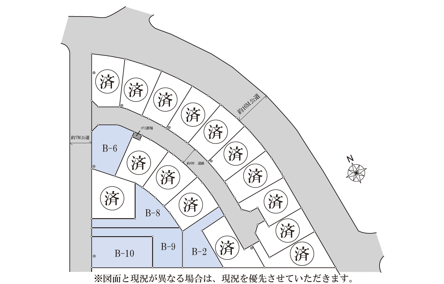 宅地分譲 エスト・スクエア 青葉台 販売価格土地価格 900万円〜 New 所在地 市原市青葉台3丁目3-2 交通 JR内房線「姉ヶ崎」駅バス10分 「青葉台第一」バス停徒歩2分 ■青葉台幼稚園 ・(約600m)徒歩約7分 ■帝京大学ちば総合医療センター・(約1000m)徒歩約13分 ■市原市役所姉崎支所・(約1700m)徒歩約23分 ■市原市立青葉台小学校・(約220m)徒歩約3分 ■市原青葉台郵便局 ・(約210m)徒歩約3分 ■市原市立姉崎東中学校・(約1200m)徒歩約15分 ■青葉台第二バス停・(約130m)徒歩2分 ■三角公園 ・(約120m)徒歩約2分 ■青葉台中央公園・(約450m)徒歩約6分 ■茂久田診療所・(約550m)徒歩約7分 区画図 区画 A-1 済 済 A-2 済 済 A-3 済 済 A-4 済 済 A-5 済 済 A-6 済 済 A-7 済 済 A-8 済 済 A-9 済 済 A-10 済 済 B-1 済 済 B-2 167.91㎡(50.79坪) 970万円 B-3 済 済 B-4 済 済 B-5 済 済 B-6 178.26㎡(53.92坪) 1,520万円 B-7 済 済 B-8 176.24㎡(53.31坪) 900万円 B-9 195.23㎡(59.05坪) 980万円 B-10 212.90㎡(64.40坪) 1,550万円 間取り 現地写真 現地案内図 物件概要 ■所在地/市原市青葉台3丁目3-2他 ■土地権利/所有権 ■地目/宅地 ■都市計画/市街化区域 ■用途/第1種中高層住居専用地域 ■最適用途/住宅地 ■現況/更地 ■建ぺい率/60% ■容積率/200% ■接道/6m開発道路、北西側約7m公道 ■引渡日/相談 ■設備/東京電力・都市ガス・公営水道・本下水 引込有り ■備考/法第22条区域内、第2種高度地区,青葉台地区計画有り ■取引形態/代理 印刷図面はこちら